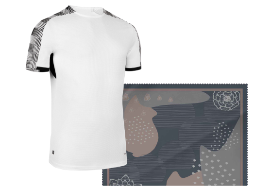 Vivid, long-lasting prints infused directly into poly fabric, perfect for custom designs.